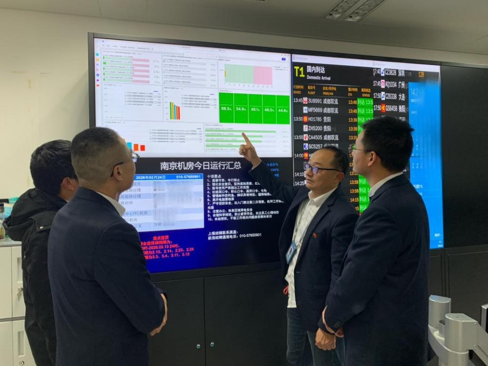 面对返工高峰客流,华东凯亚运维团队开展各机房全维度安全巡检,对服务器、网络设备等关键设施逐项排查测试,重点核验离港、安检前端业务系统运行状态,排查安全隐患,确认设备参数正常、负载平稳。
